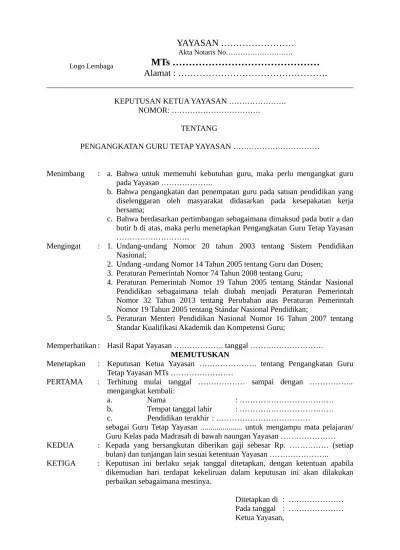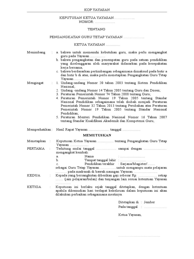 Jika artikel ini kurang jelas dan mungkin masih ada pertanyaan, anda bisa tanyakan pada kolom komentar yang tersedia di akhir postingan ini. sk yayasan format 638 x 826 contoh sk gty tk yayasan operator sekolah taman krocok format 410 x 616 pixel download contoh sk guru tetap yayasan format 638 x 1051 pixel download contoh sk pengangkatan yayasan untuk gty guru tetap format 1105 x 580 pixel download sk yayasan kartika jaya format 638 x 1003 pixel download pdf sk guru tetap yayasan. Bahwa yang namanya tercantum dalam surat keputusan ini di pandang mampu dan memenuhi syarat sebagai marbot masjid periode 2016 2020. 10 contoh surat keputusan pengangkatan karyawan dll lengkap. Tk uptd bps surabaya 1.
